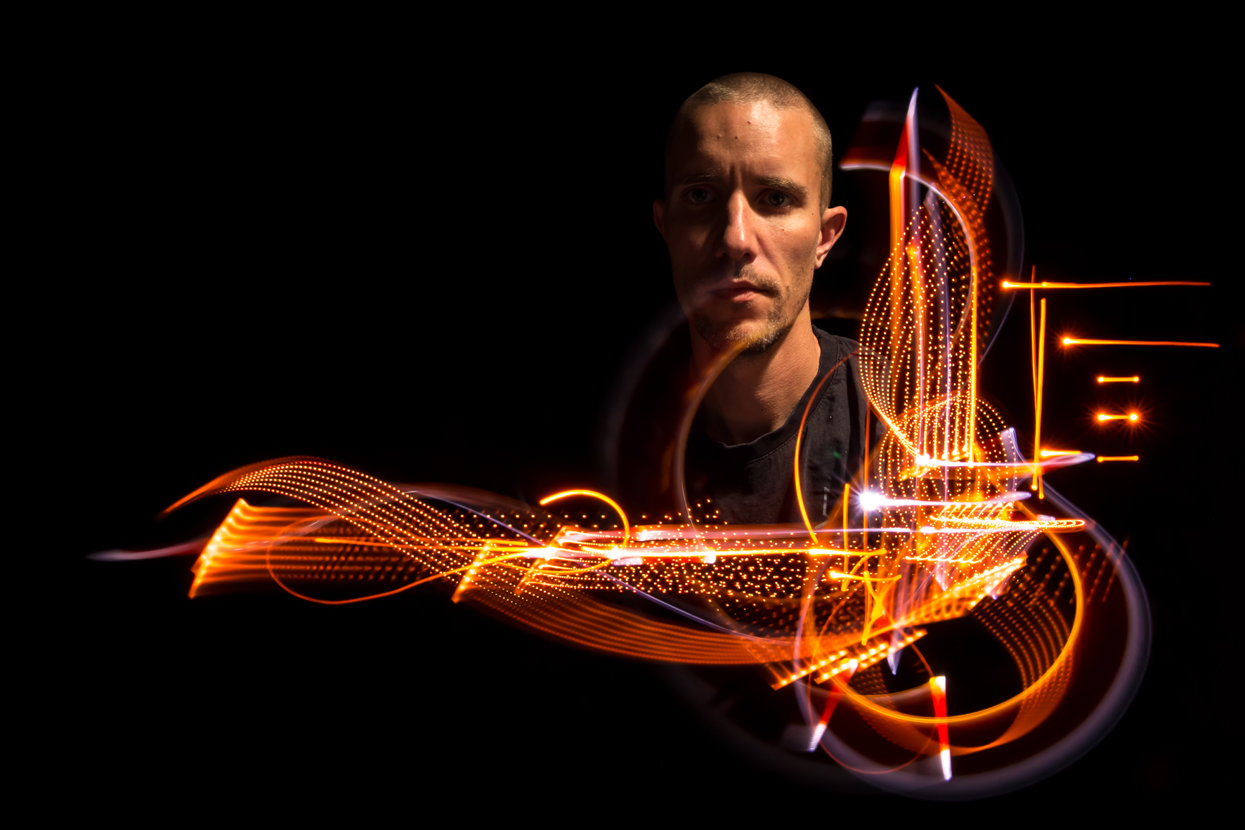 El light painting me permite crear luz y un universo irreal, hago composiciones fotográficas muy gráficas, próximas a composiciones realizadas por ordenador. También estoy influenciado por el graffiti y la caligrafía árabe, y trato de combinarlo todo para crear un universo variado. Siempre que puedo, trabajo con otros artistas y trato de ir más allá en mi investigación trabajando en proyectos que combinan la luz con otras disciplinas como la danza o las artes escénicas (malabares, contorsionista…)